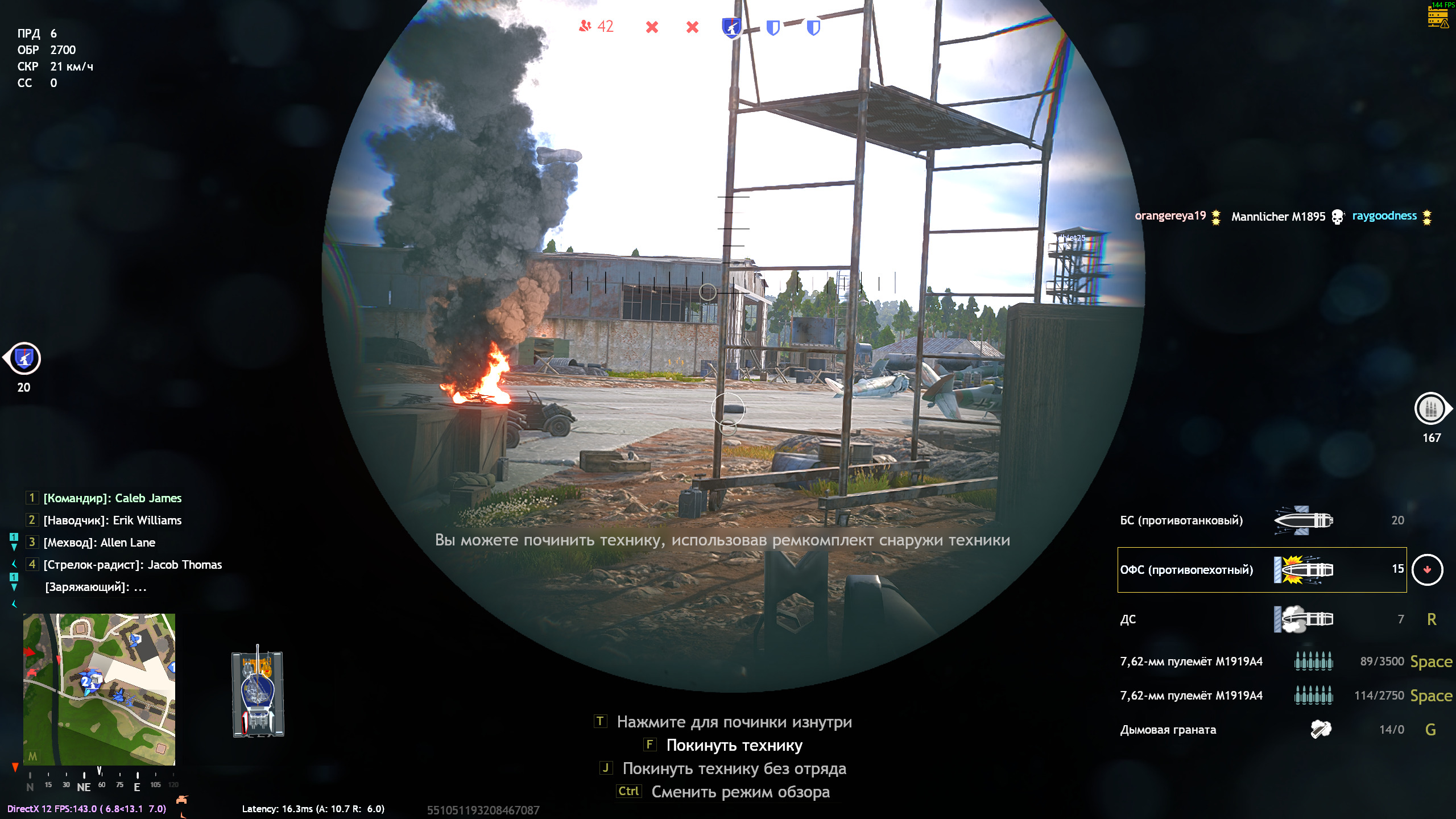 оказывается у наводчика есть вид из перископа, так что кажется что управление Чаффиком в 3 члена экипажа было бы вполне нормальным, но всё портит этот стрелок радист который упорно хочет управлять заклинившим в корпусе пулеметом!