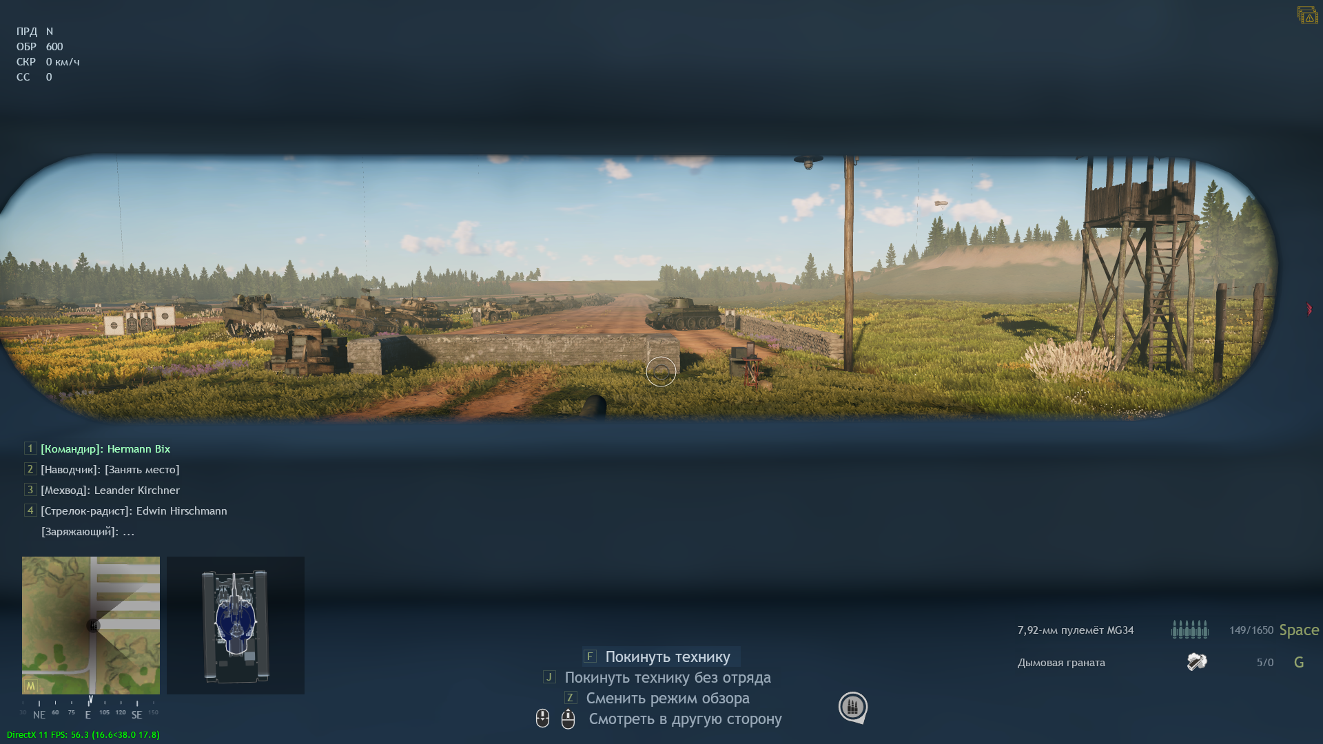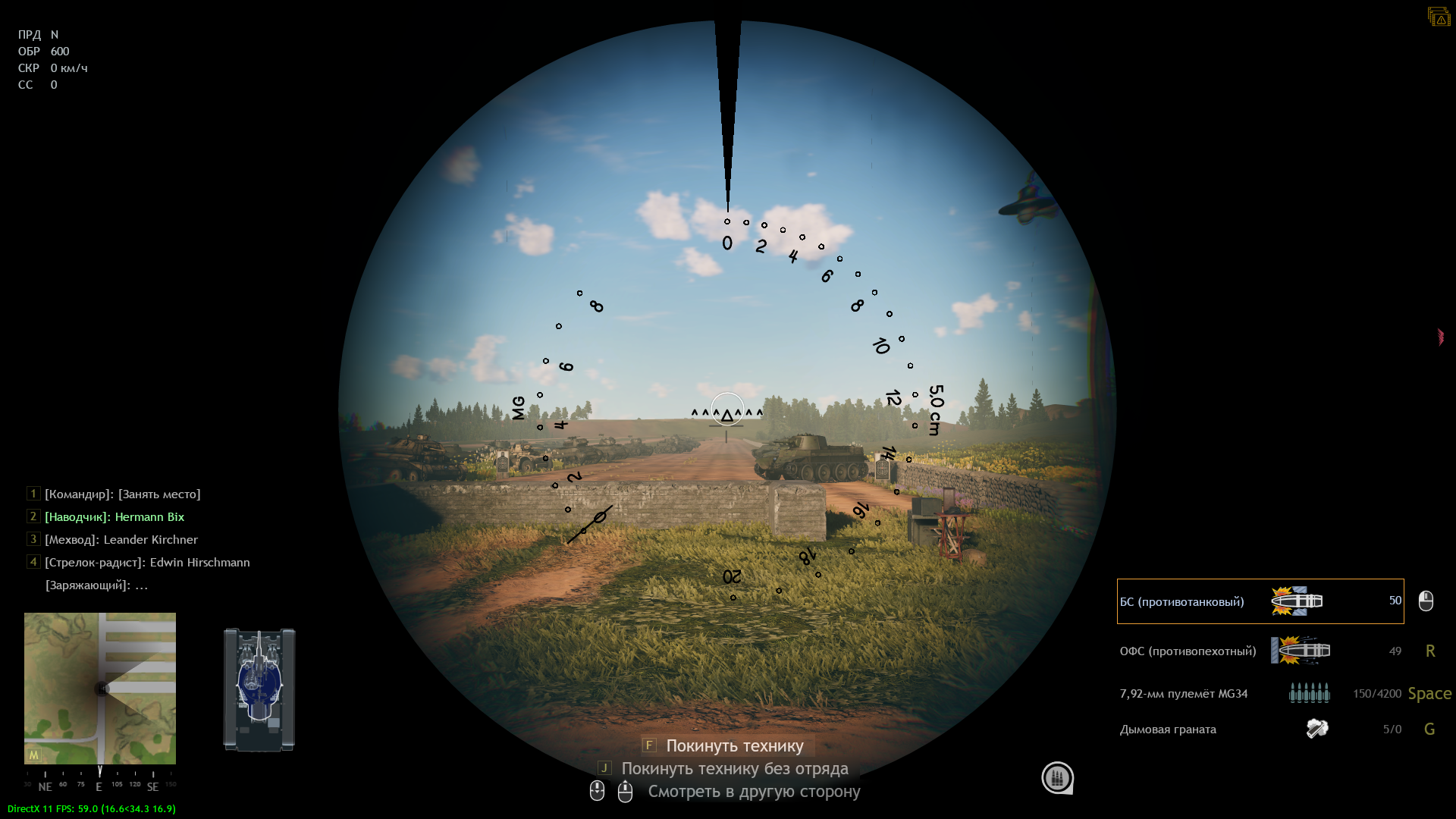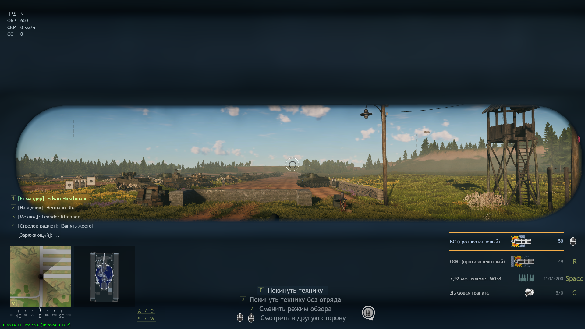 Сажусь обратно на командира, потому что заряжающего всё равно нет, а там мне обзор больше нравится. Радист остаётся на месте. Хоба, я не могу крутить башней и стрелять из пушки.