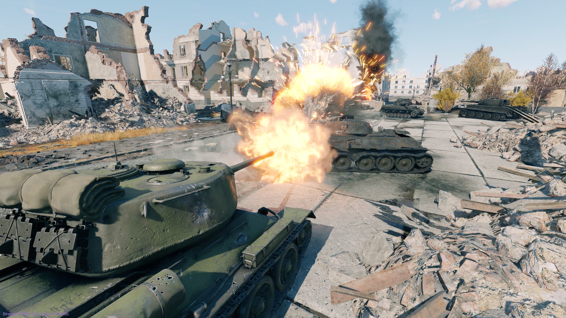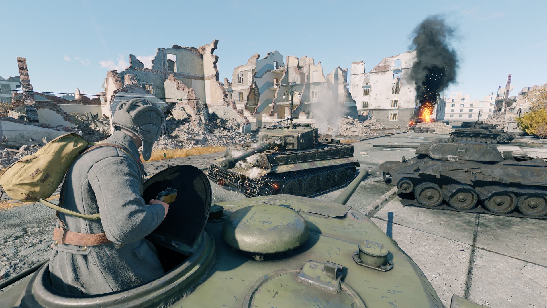 танки остались полностью боеспособными. Я не зная кто перезарядится первым решил заехать за горелый остов и убить тигра взрывпакетом. НО. Совершенно внезапно оказалось, что взрывпакет нельзя ни бросить, ни даже взять в руку