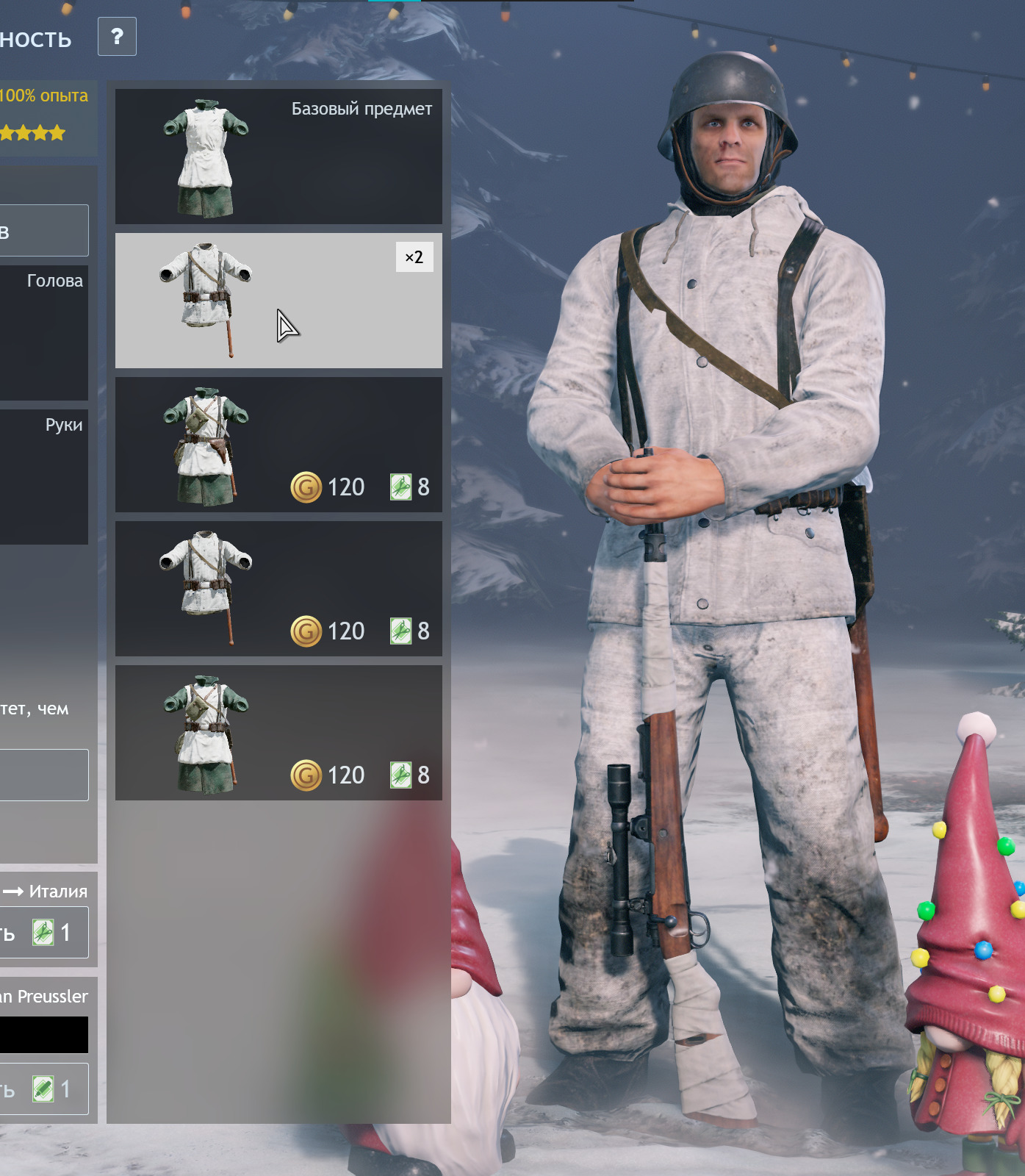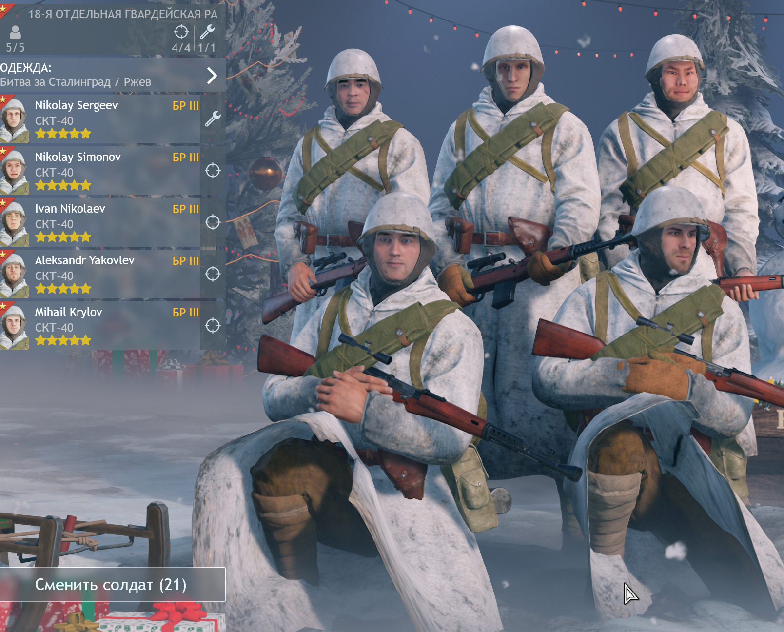 Ивентовый отряд германии, который с кустами, в сталике имеет белый камо и меня периодически путают с советскими снайперами. Боты конечно стреляют, но игроки путаются, особенно когда перестрелка в здвнии