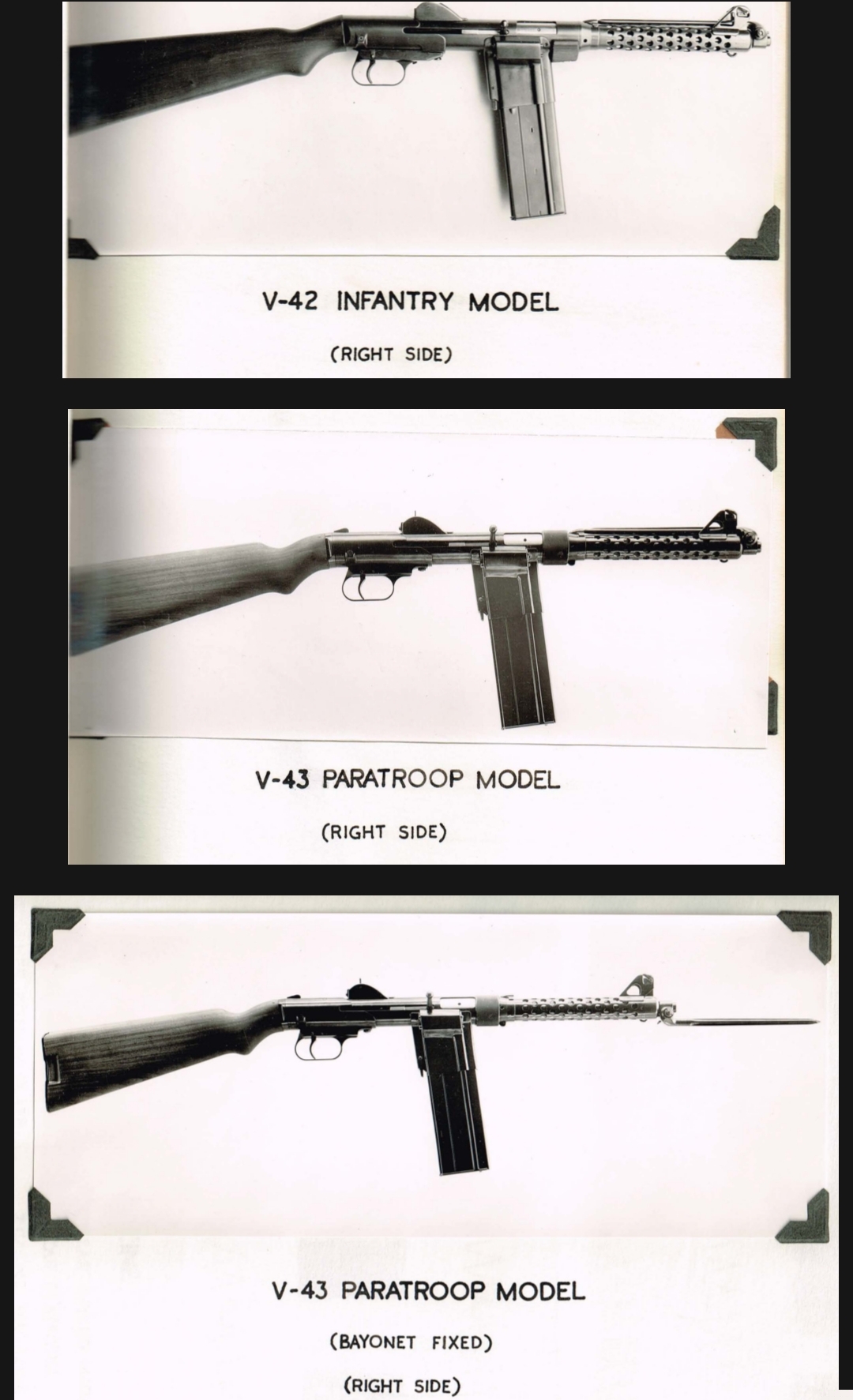 Военное ведомство закупило 6 пистолетов-пулеметов - 3 в пехотном варианте (V42) и 3 в парашютно-десантном (V43), по 12 ф.ст. за штуку. Кроме того, было приобретено и 12 магазинов, рассчитанных на 60 патронов.