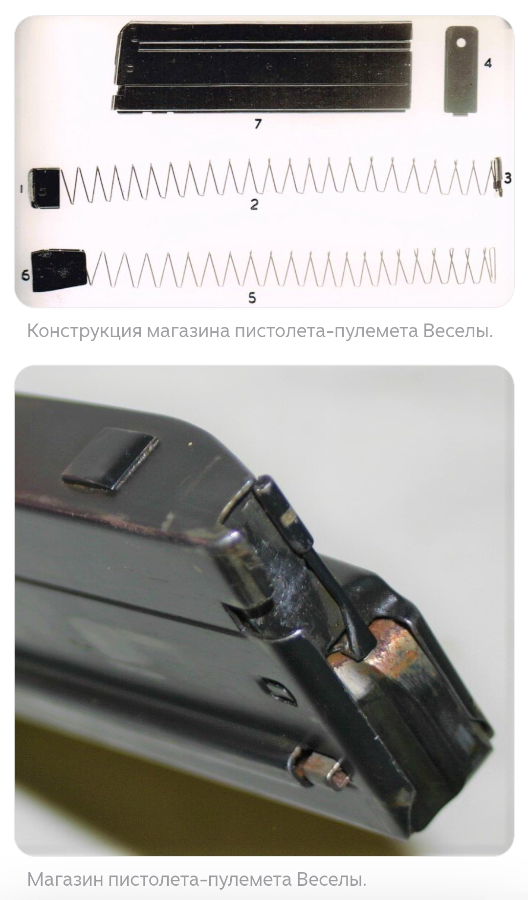 В-третьих, пистолет-пулемет имел магазин оригинальной конструкции - патроны располагались в нем в два “столба” друг за другом.
