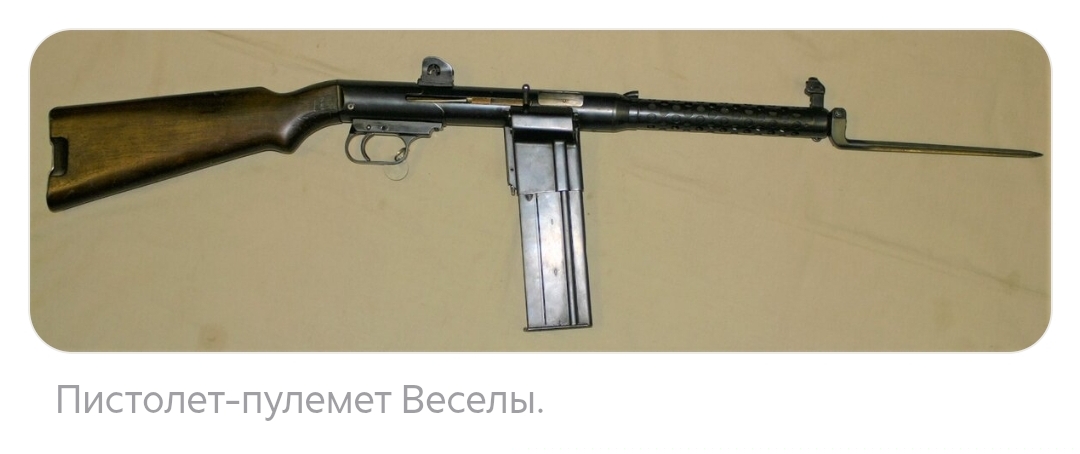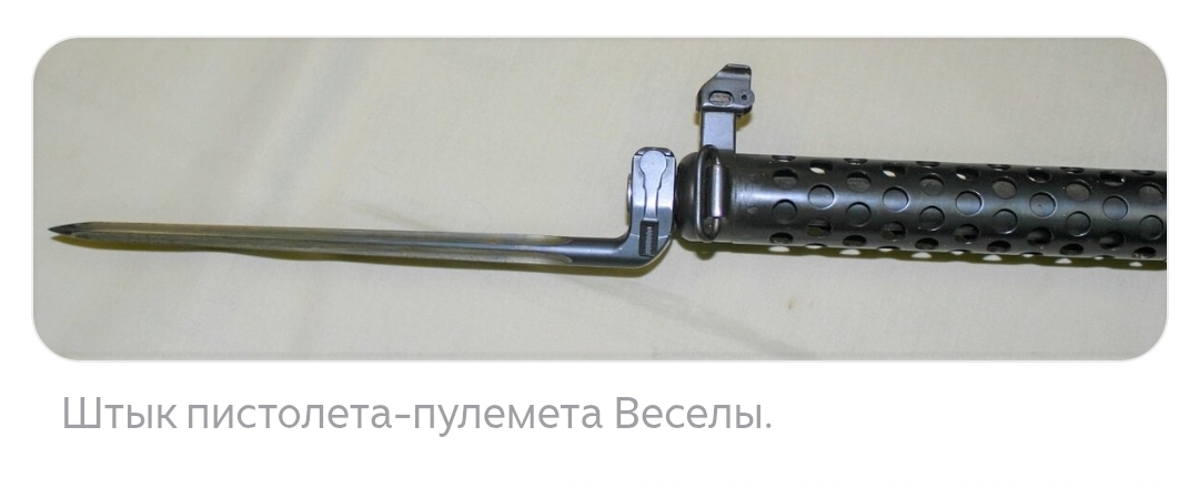 В целом пистолет-пулемет Йозефа Веселы был, можно сказать, уже “классическим” для этой группы оружия: автоматика работала на энергии отдачи свободного затвора, огонь мог вестись в самозарядном и автоматическом режимах (переводчик, он же предохранитель, находился слева у спусковой скобы), прицельные приспособления состояли из мушки и трехпозиционного целика (на 100, 200 и 300 ярдов), использовался патрон 9х19 мм Парабеллум. Даже перфорированный кожух для охлаждения ствола, деревянный приклад и игольчатый штык тоже можно считать вполне классическими элементами конструкции пистолетов-пулеметов начального этапа Второй Мировой войны.
