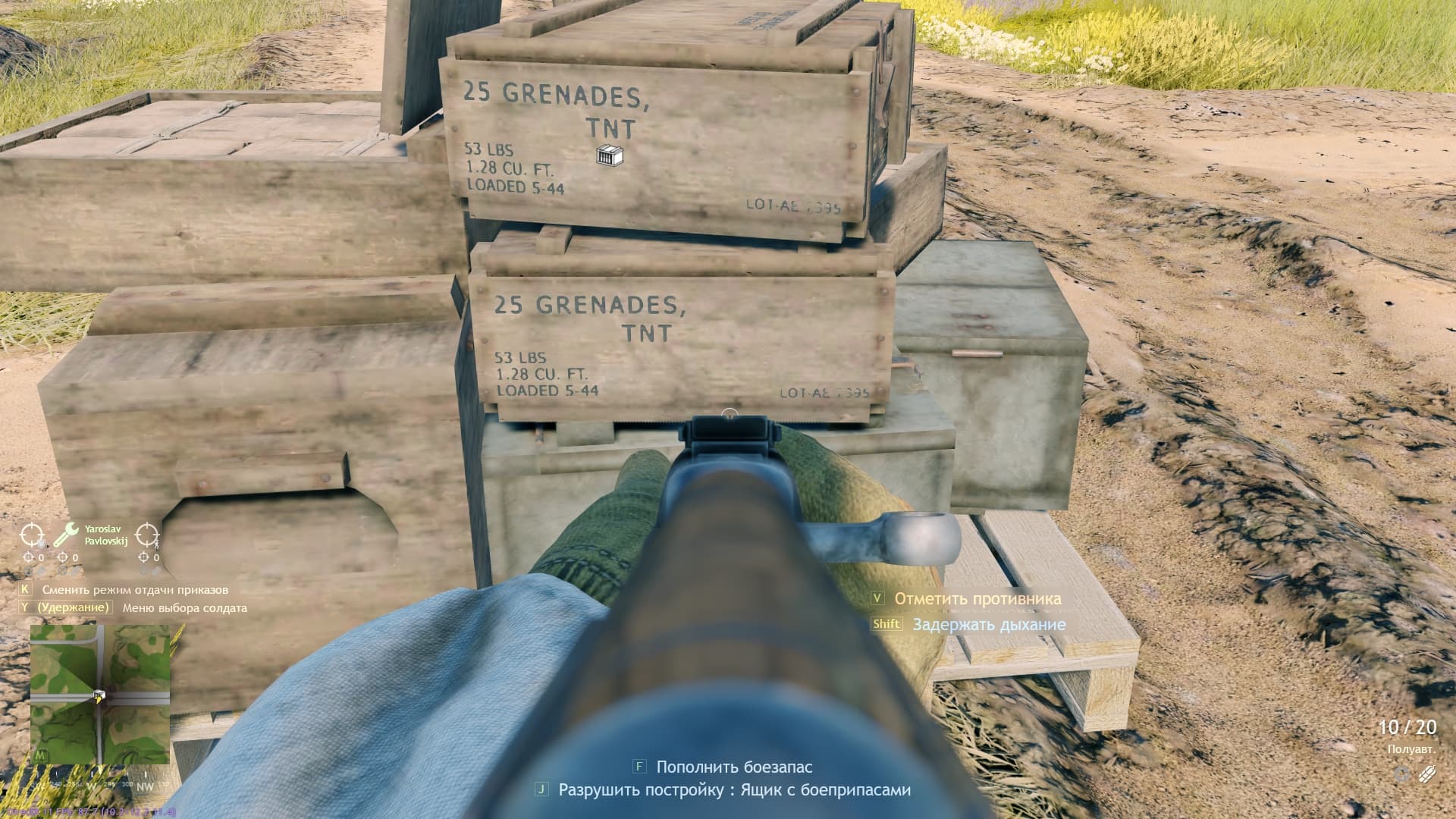 На ящиках написано ручные гранаты и взрывчатка, а пополнять их там нельзя