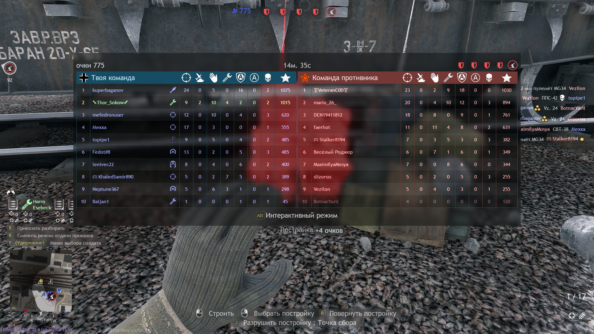 Возможно мы бы победили (я бы победил) в этой катке, если бы в моменте слишком не понадеялся на союзников. Я сломал противнику 3 респа, и стоял 1 мой. Точку немцы захватывали медленно, думаю всё, преимущество закрепил, думаю выеду на машинке, пока союзники держат время затягивают, будет ещё один мой респ, артой добью подходящих, зайду снова в тыл и всё, победа. Вот что я увидел открыв карту: