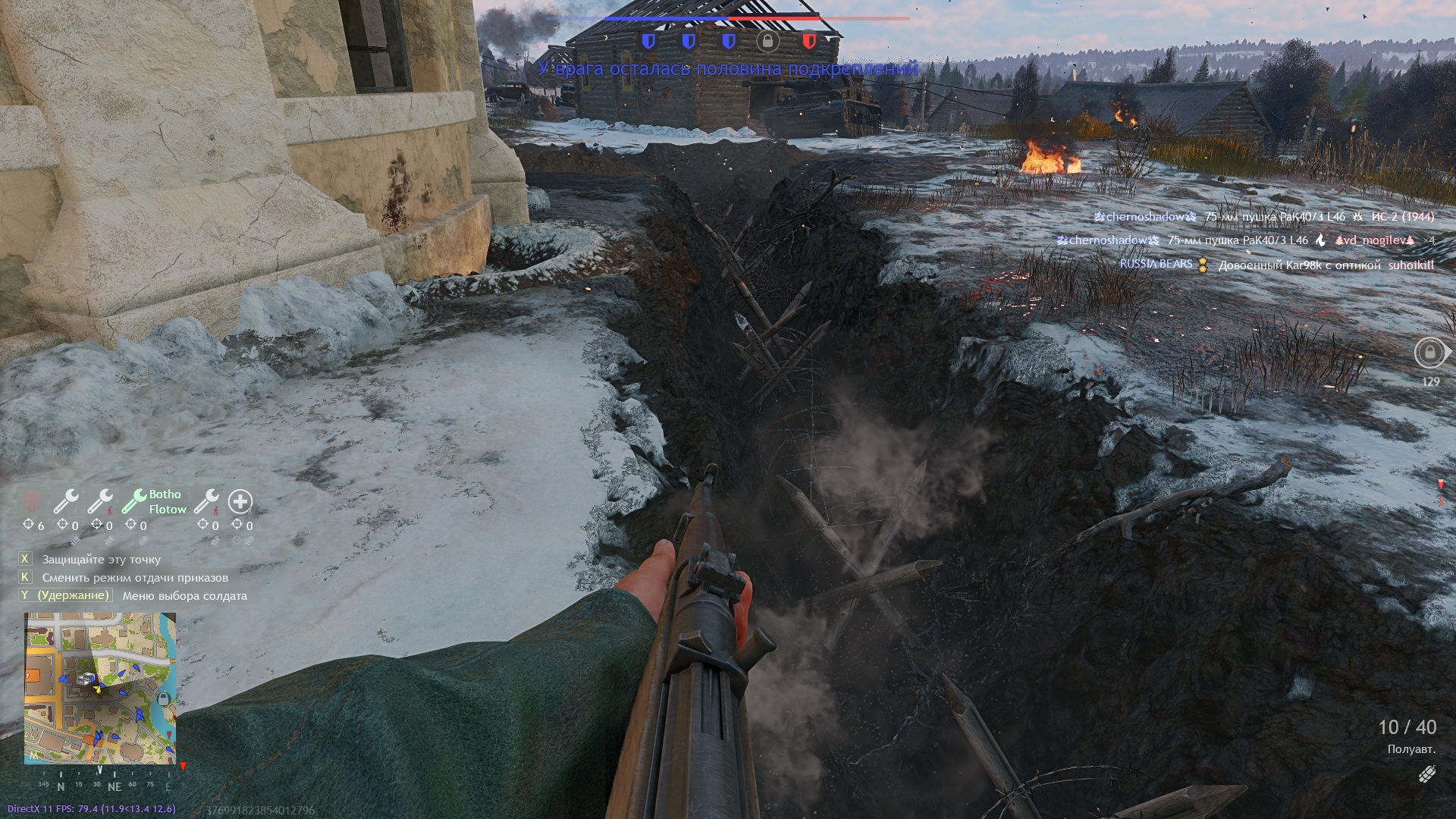 Вообще, на этой карте 2 инженера с ежами могут такой ужас для атакующих устроить… Тупо оградить заходы перед траншеей и никто не пройдёт, как бы он не старался. Пытался такое провернуть с другом, но его убили раньше, чем он успел ежей возвести.