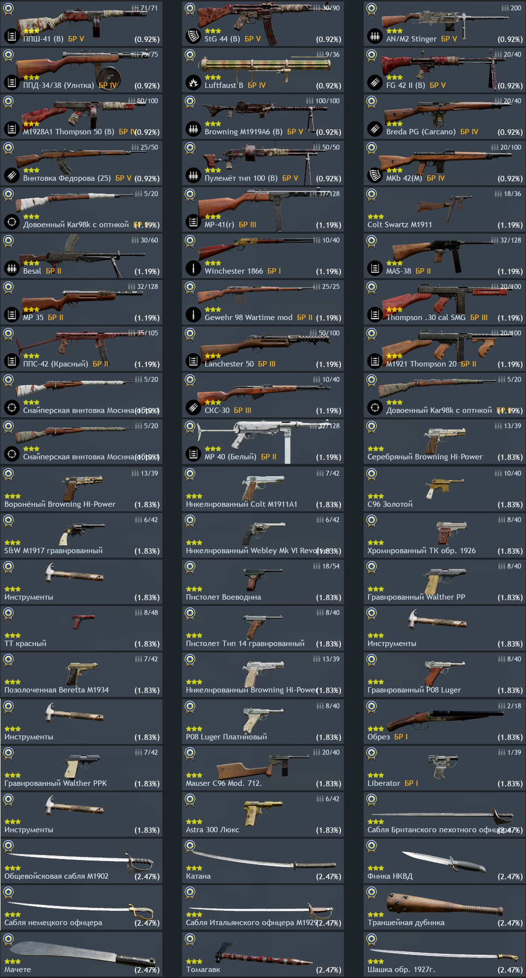 Сабли, дубинка, мачете, томагавк, финка - ивентовое оружие. Еще оно может выпасть из серебряных ящиков (казино).