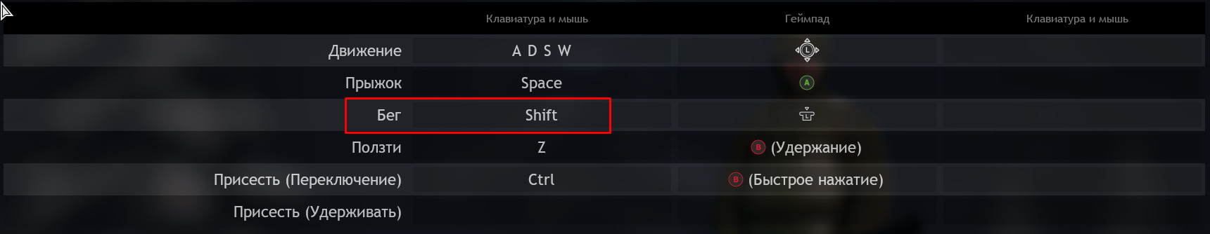 Shift+W - бег.