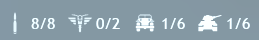 Максимум - 8 пехотных отрядов, 2 мотоцикла, 6 (откуда) БТРов и 6 ед.техники (самолеты и танки).