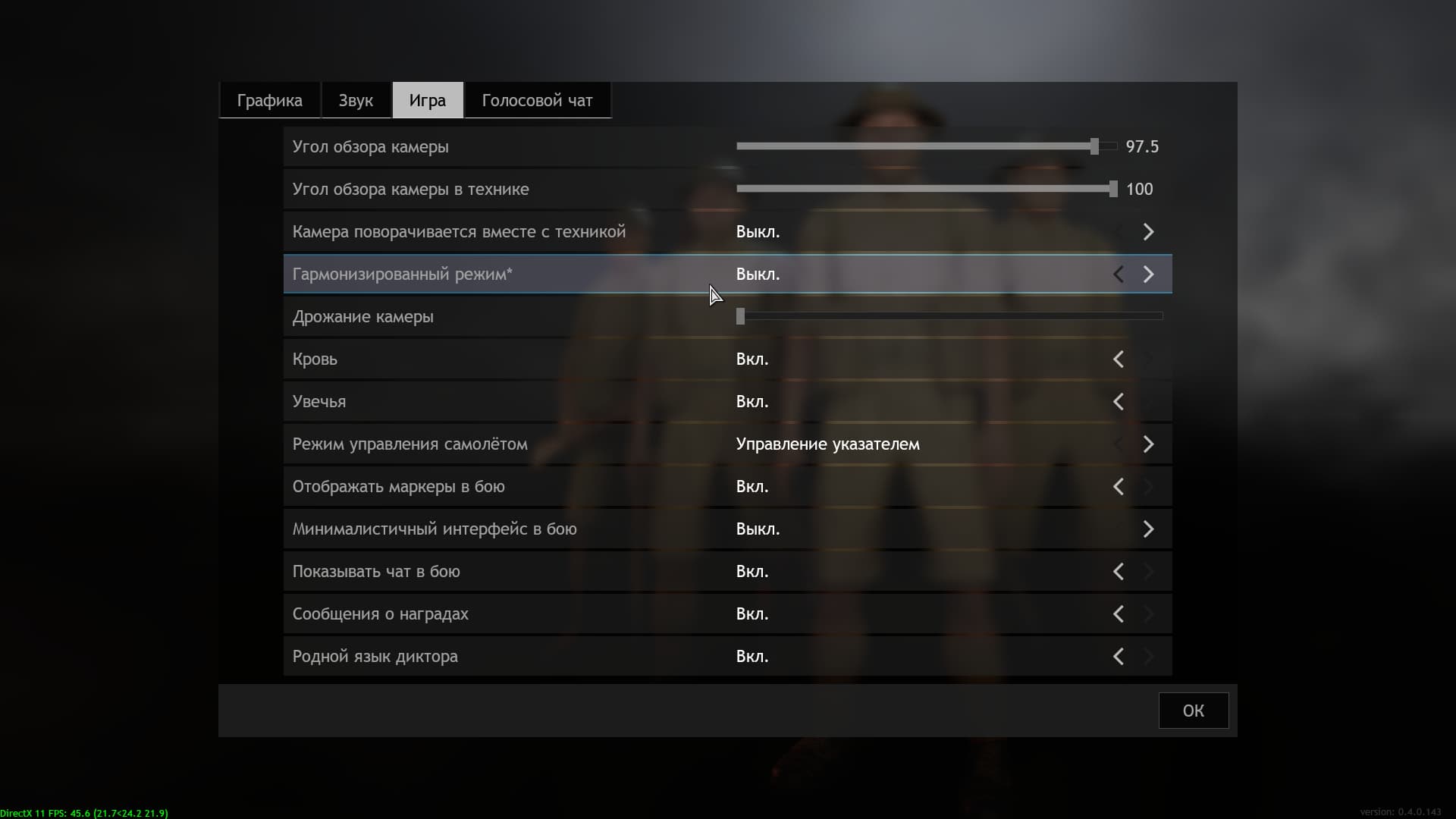 Настройки, вкладка игра.